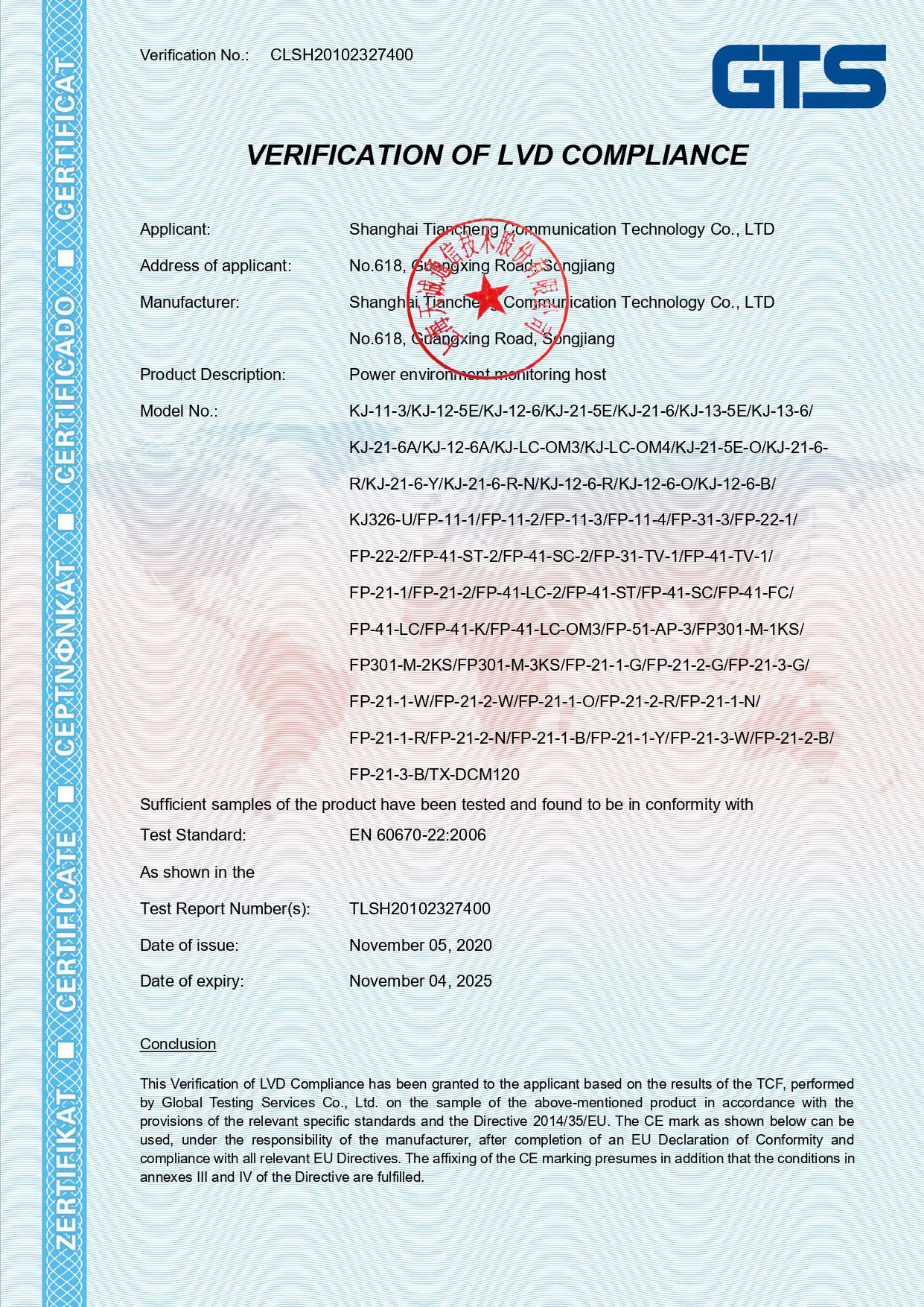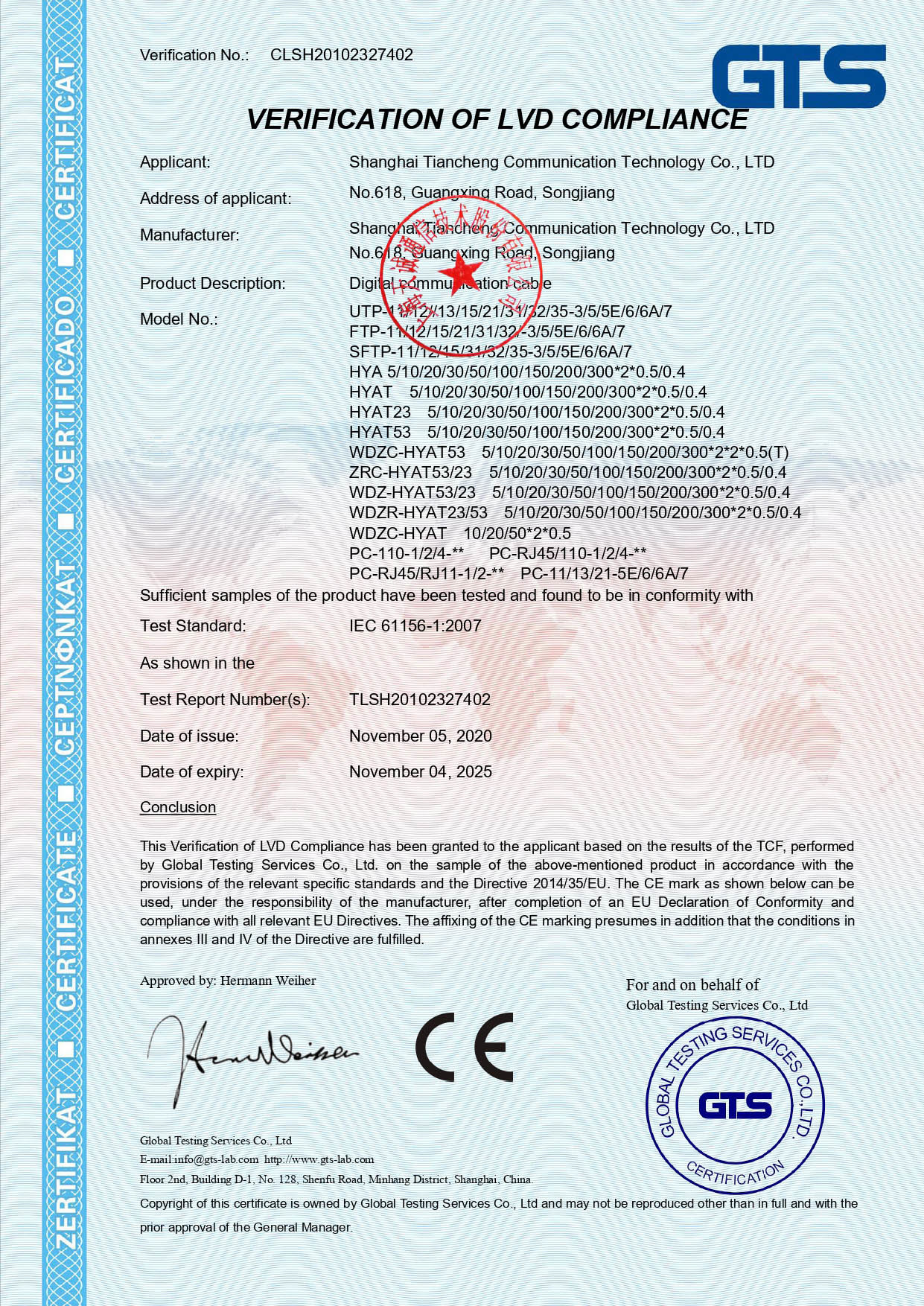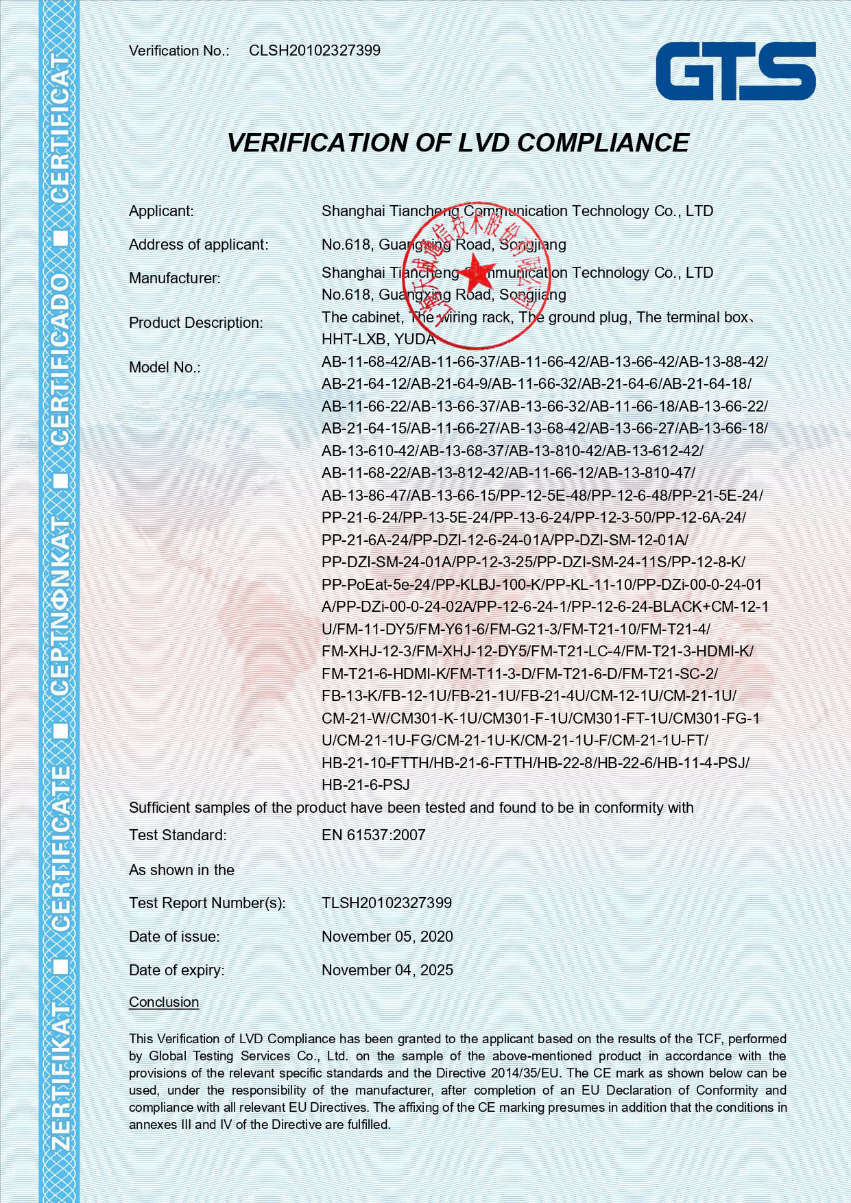 Fire Resistant Test Transmission Performance Test Weatherability Test