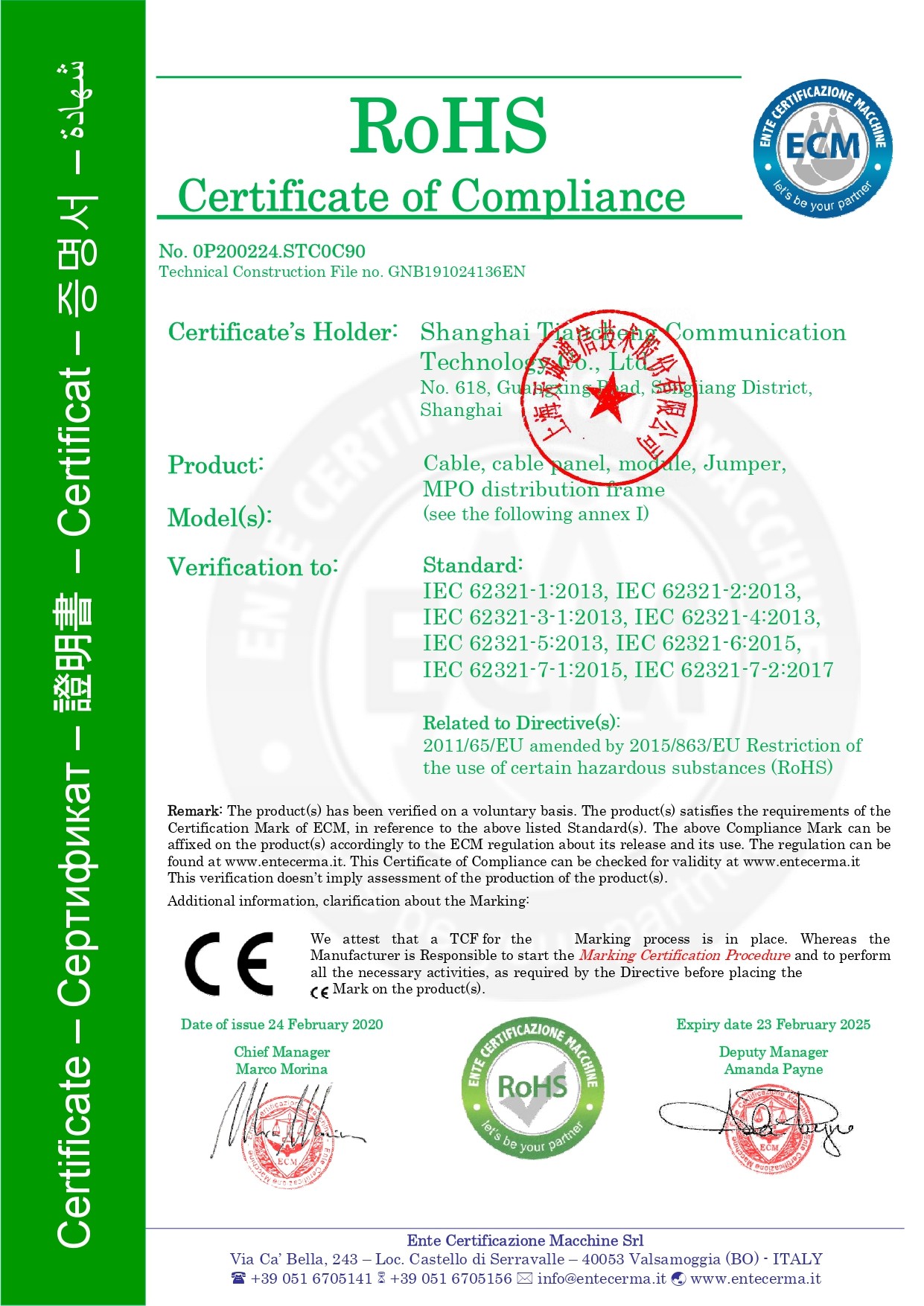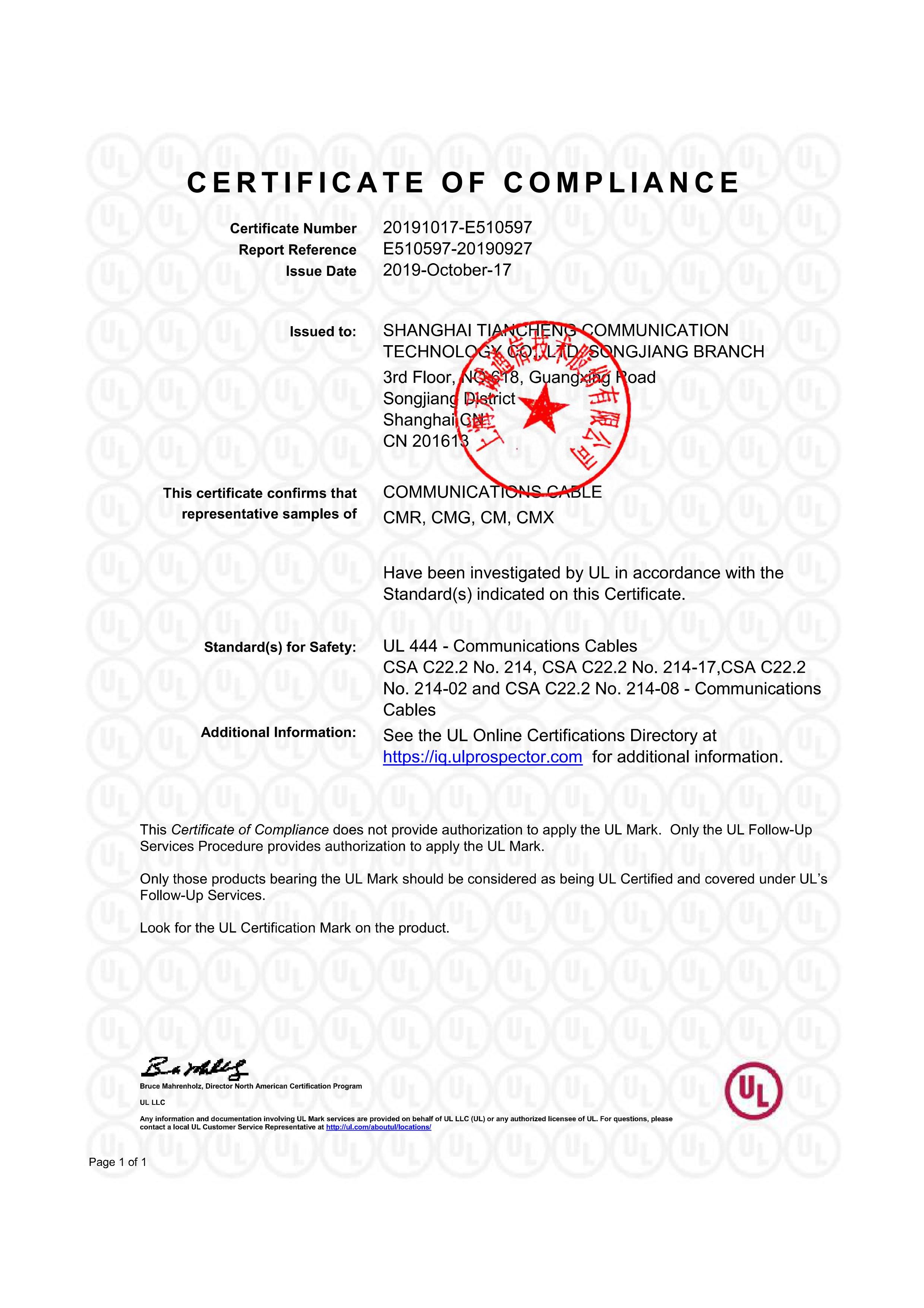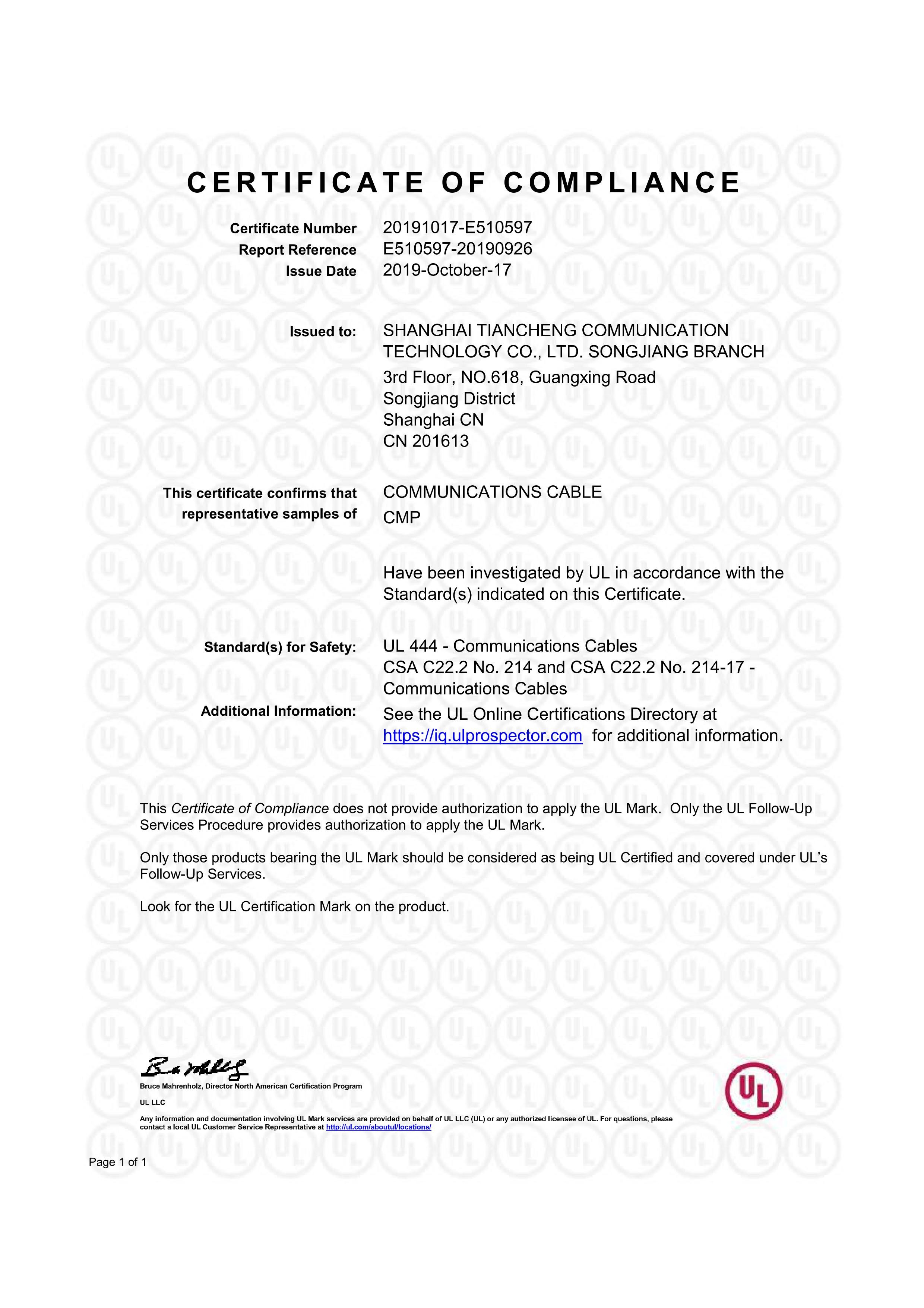 Fire Resistant Test Transmission Performance Test Weatherability Test